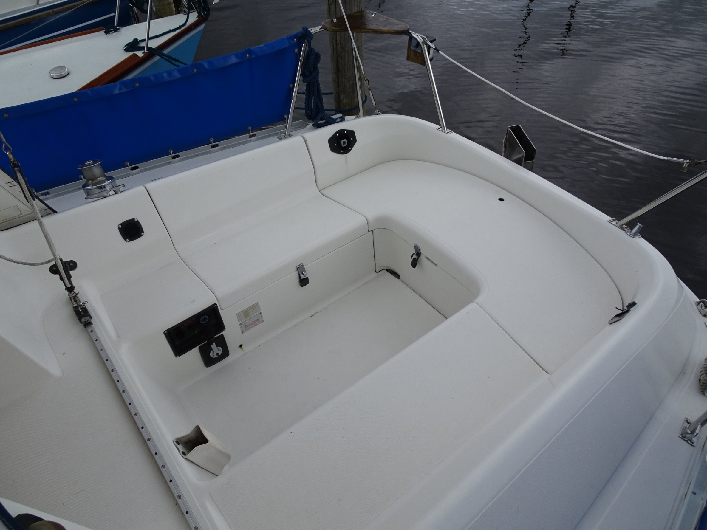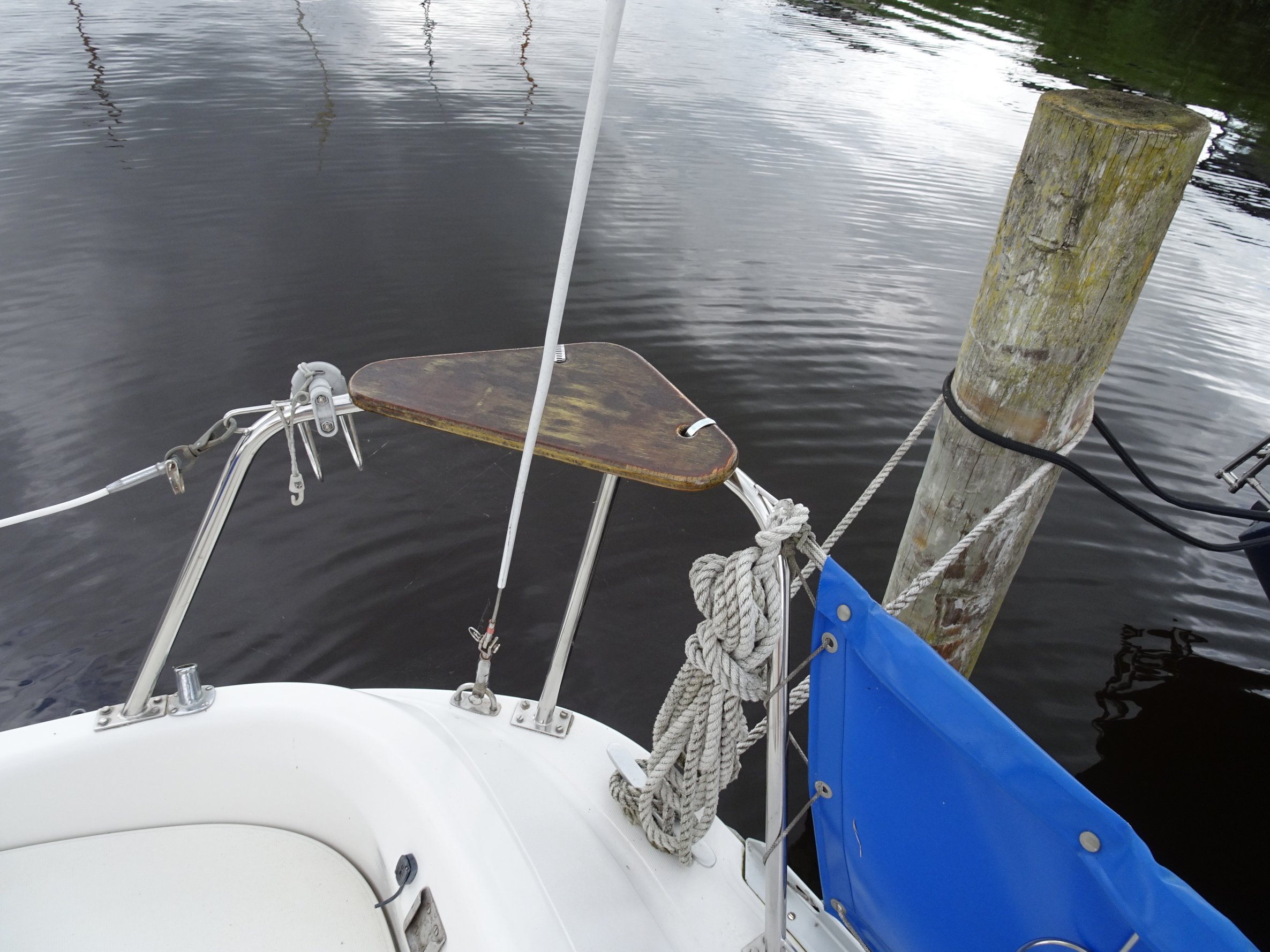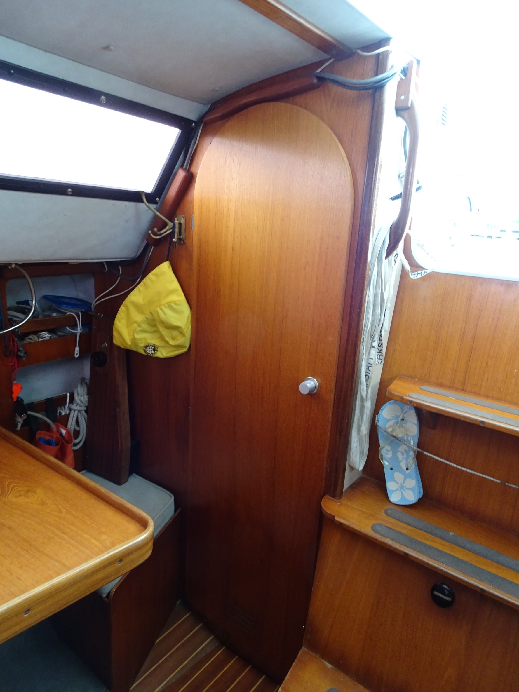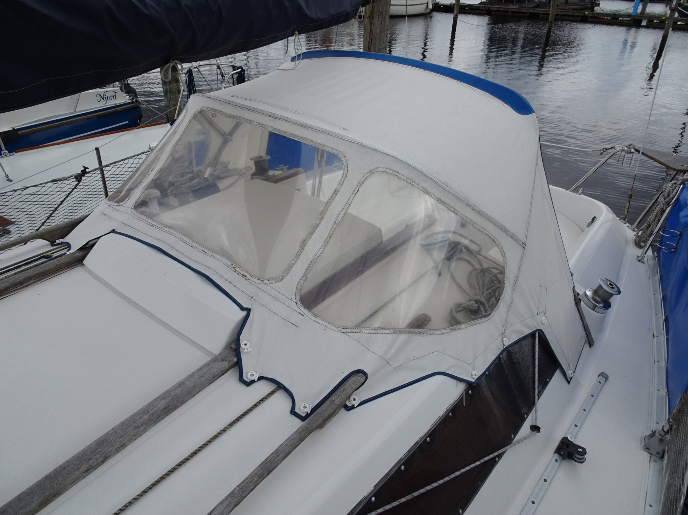 Verder is het schip plezierig compleet, de belangrijkste zaken als een toilet aan boord, koelkast, kompas, dieptemeter, GPS, spoelbak met kraan, kooktoestel etc. etc. zijn allemaal aanwezig. Qua zeilen is het ook keurig geregeld. Er zit een grootzeil bij, een Genua (op rol/reefsysteem van Plastimo), een stormfok en een Spinnaker met boom. Alle lijnen lopen naar de kuip, deze boot is prima solo te zeilen.