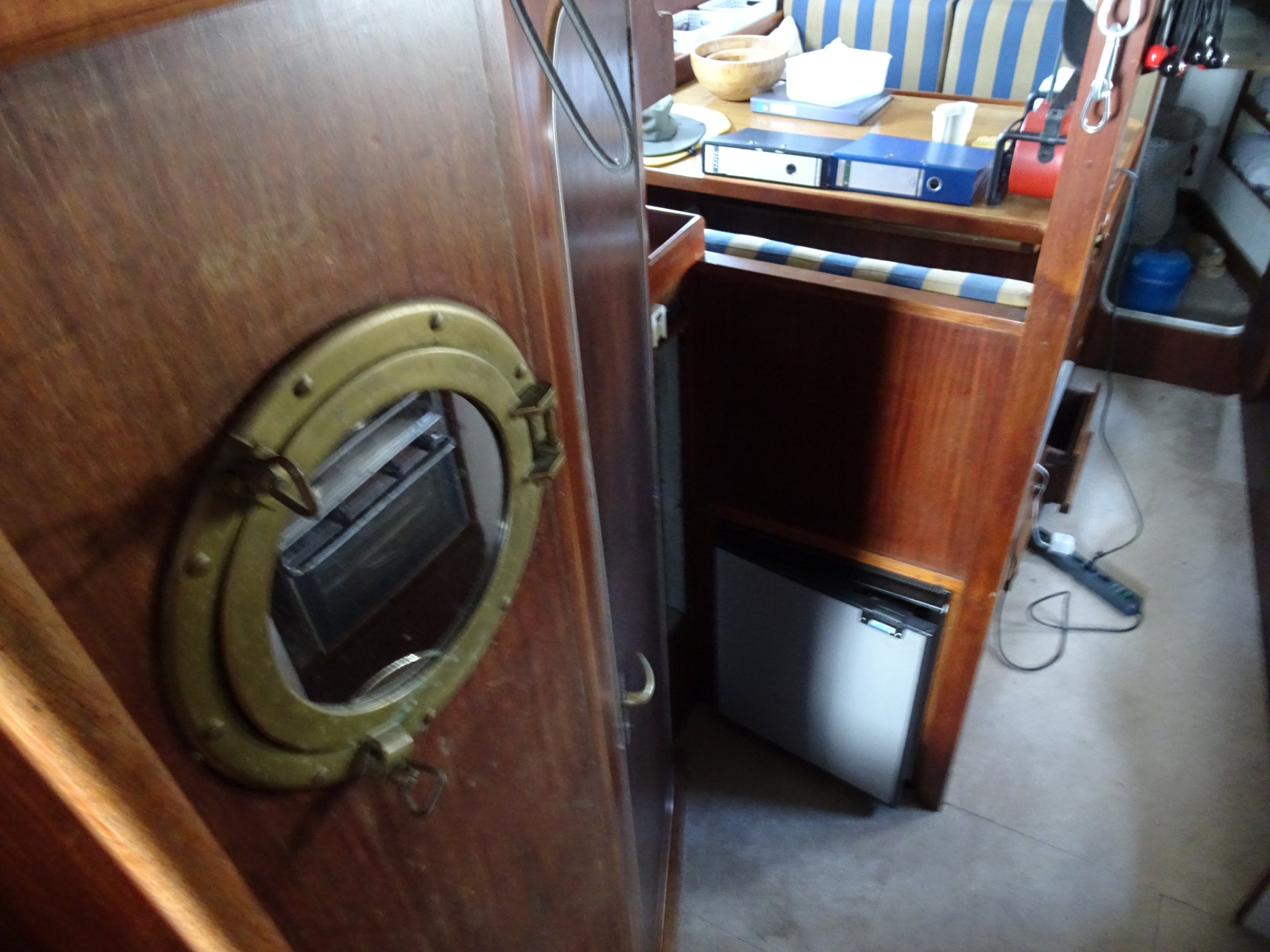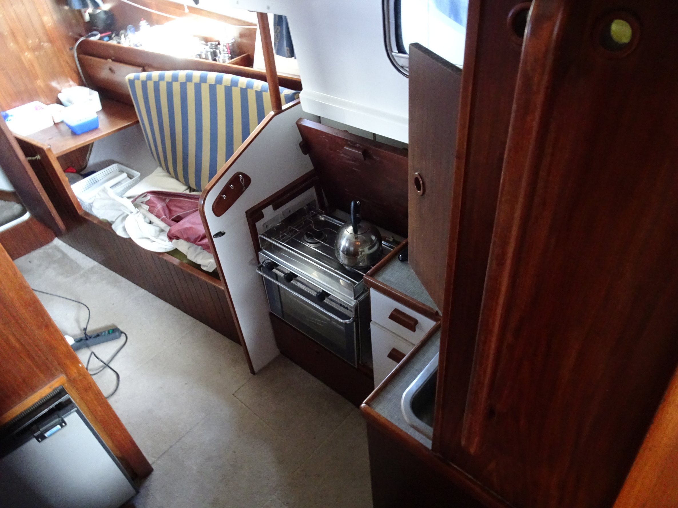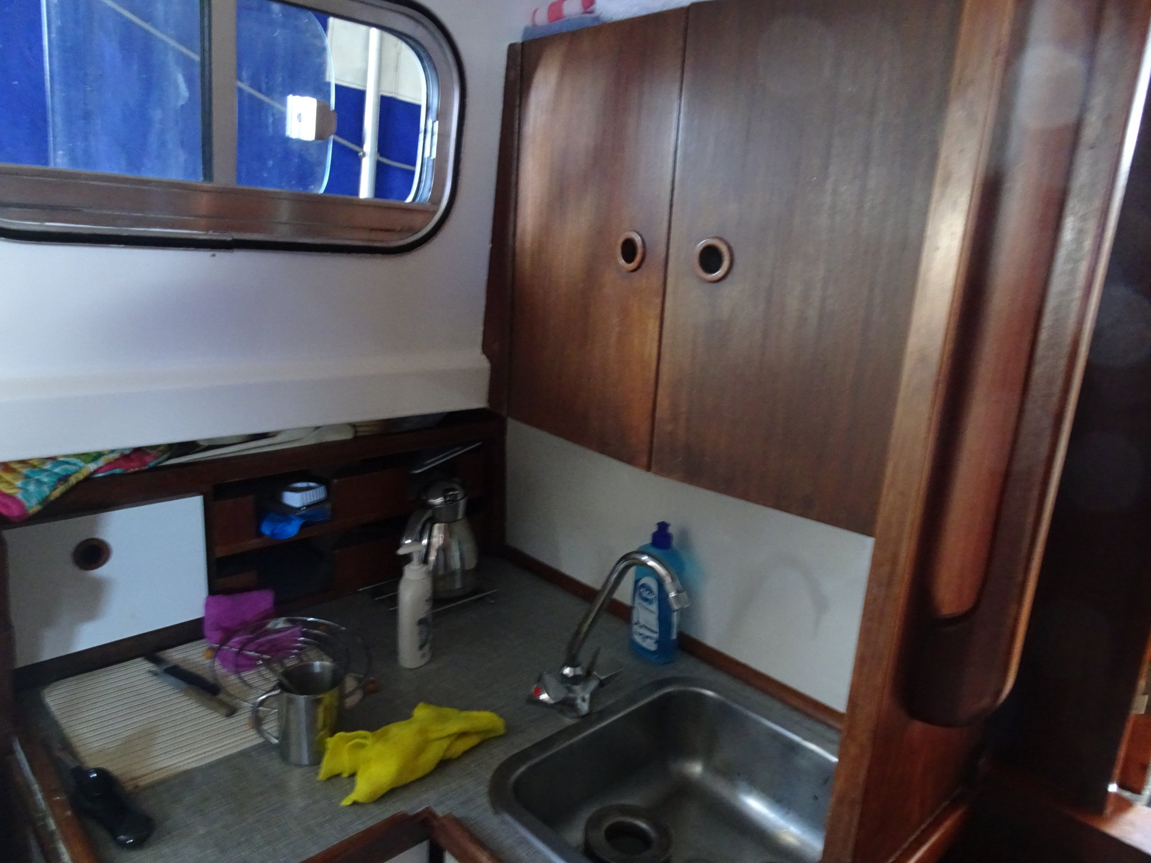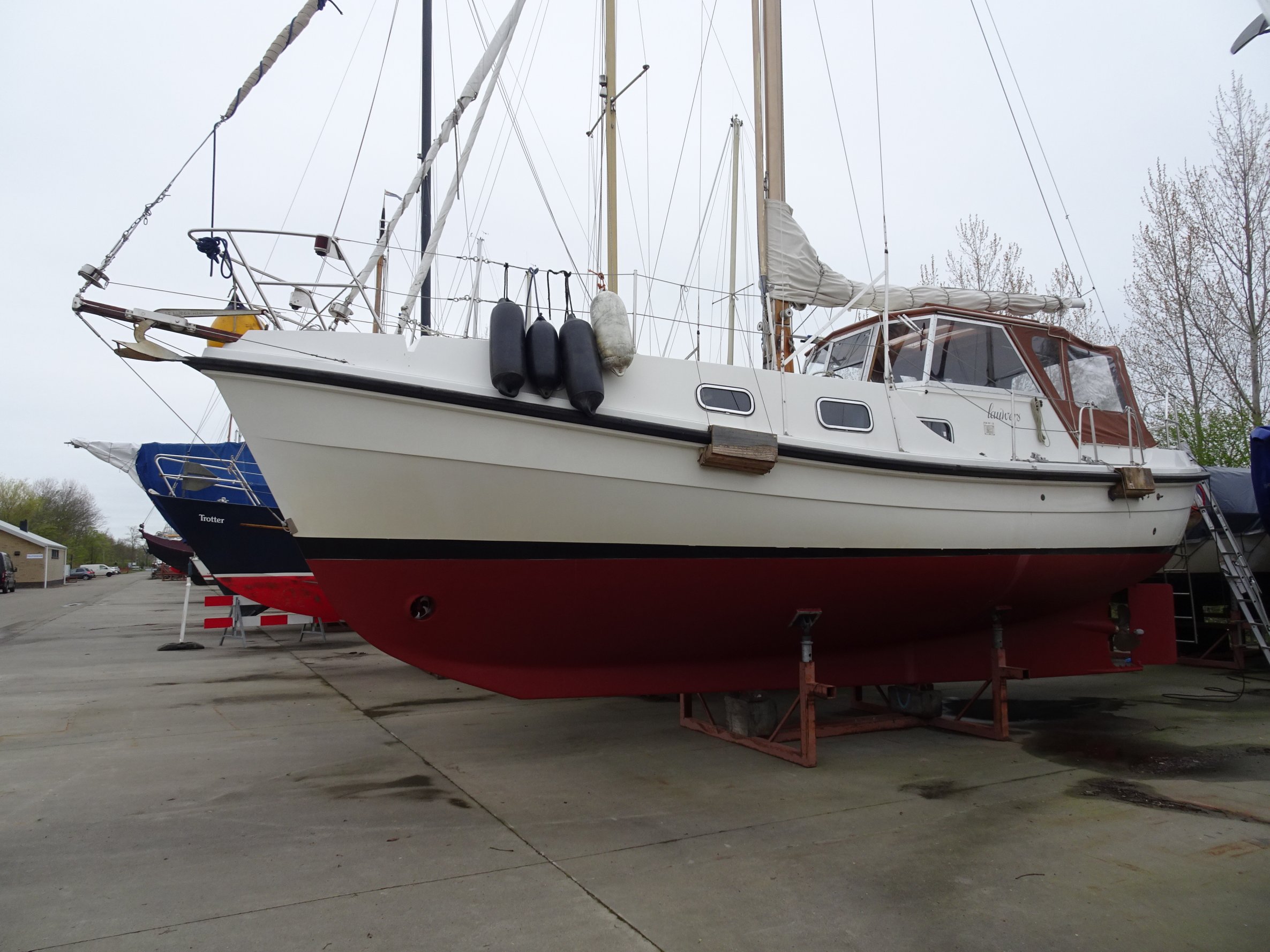 Qua comfort aan boord is het ook prima geregeld: nette kombuis, goede kachel , boiler, vuilwatertank, toilet in gescheiden ruimte (natte cel) en ga zo maar door. Er is de wereld aan onderhoud gepleegd aan dit schip dat door haar isolatie ook zeker geschikt is voor een langer verblijf, zelfs permanente bewoning, de ruimte is er. Compleet met een dubbele set zeilen en een waslijst aan opties. Ja, echt een stoer ding. Kom anders eens kijken, ze ligt in Lauwersoog en gaat binnenkort de kant op voor de winterstalling voor groot onderhoud aan het onderwaterschip (kaal halen, epoxy erop en weer nieuwe antifouling).