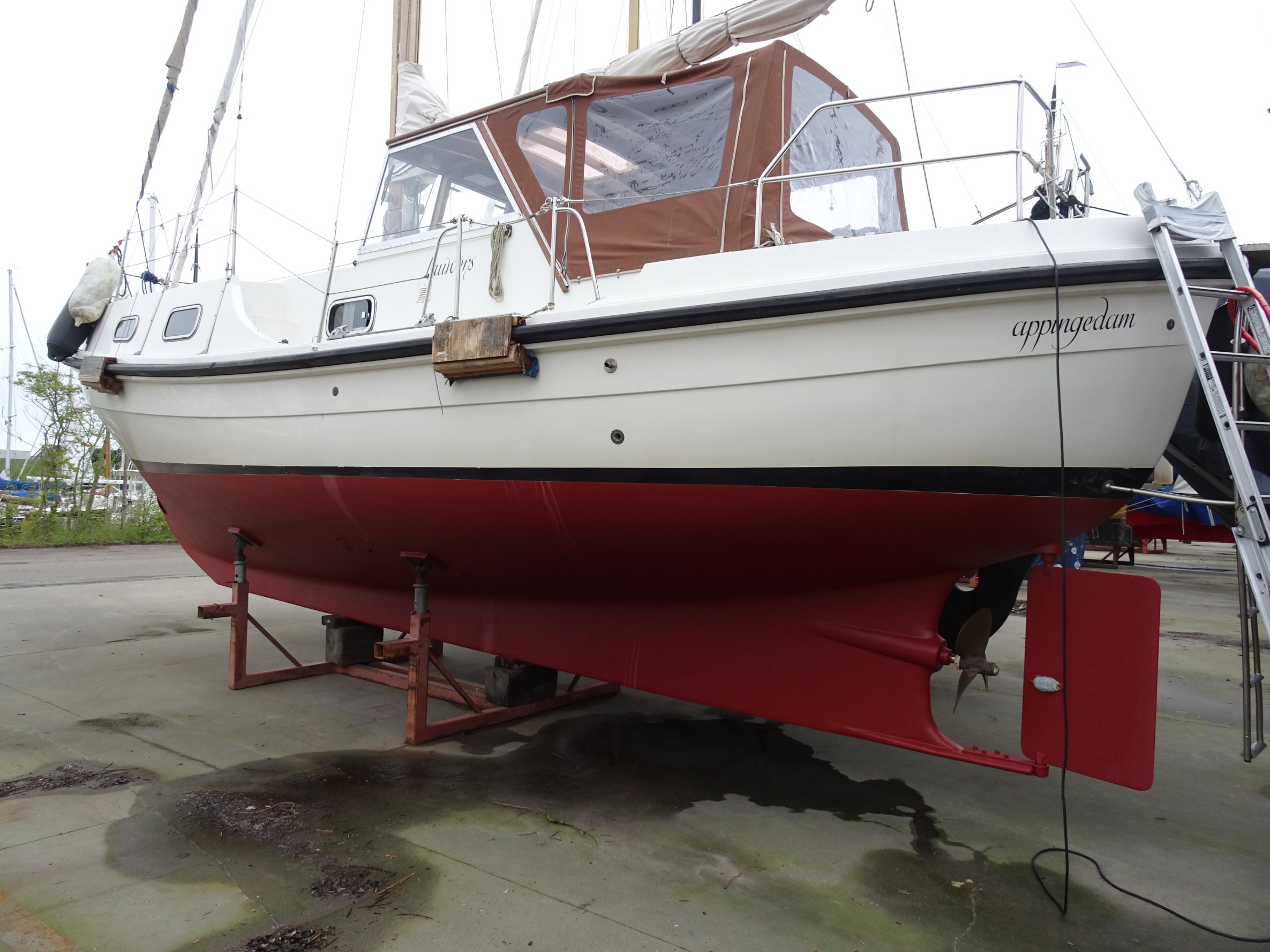 Oerdegelijk gebouwd, ongeveer centimeter dik polyester. Ze heeft in 2016 een preventieve osmose behandeling van het onderwaterschip gehad. Verder is er de afgelopen jaren, aantoonbaar middels nota’s, voor bijna € 25.000,- in dit schip geïnvesteerd, dat zie je, dat merk je. Technisch en optisch in een prima staat. Een van de hele fijne investeringen is de nieuwe motoromkasting, de motor, toch een stevige, hoor je nauwelijks, dat is echt genieten op een lange koers op de motor.